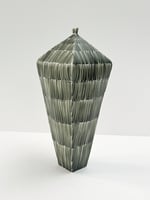 Each vessel is individually made in my studio in West Wales using porcelain, underglaze and transparent glaze. They are built using thinly rolled out slabs and constructed to form the tapered shape.