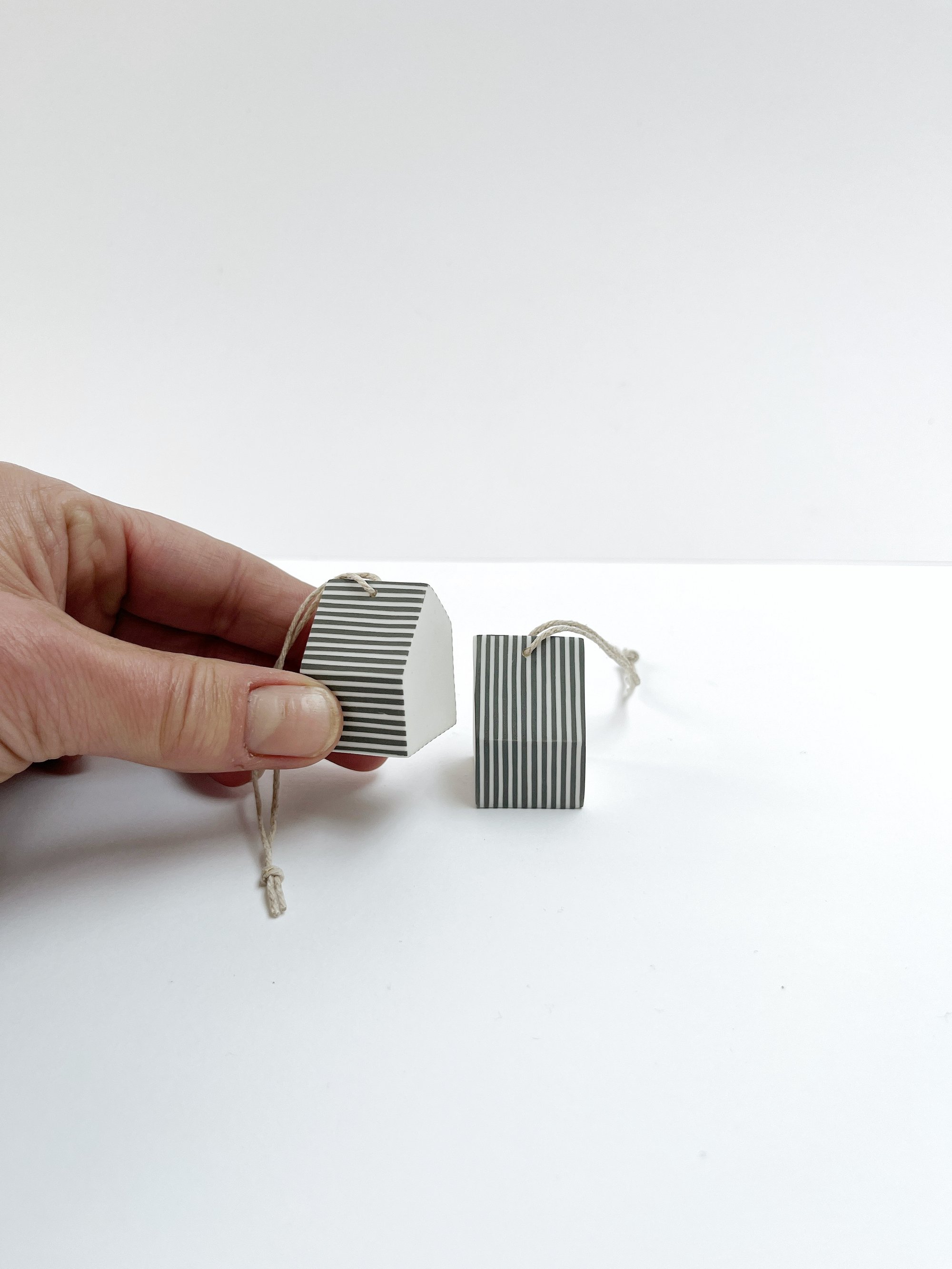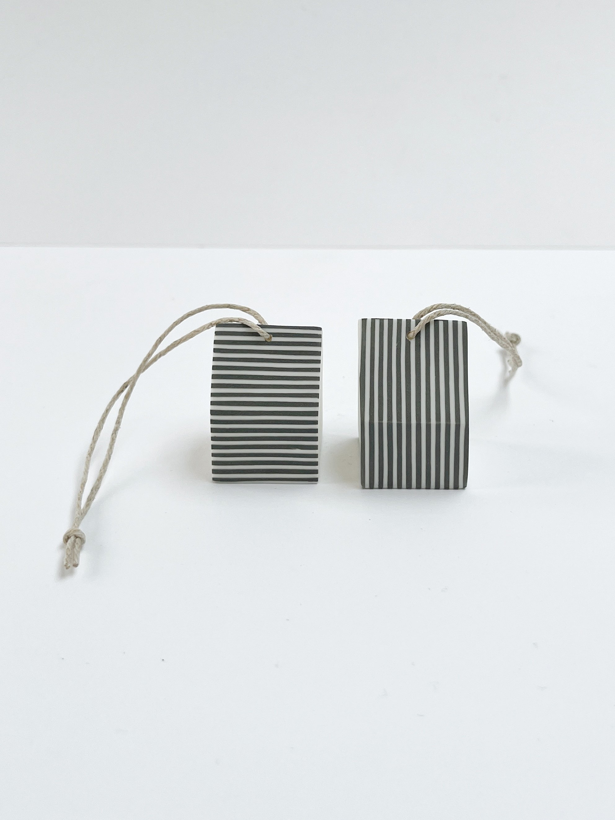 Hand built porcelain bauble decorated with stripes. Please choose from the drop down menu.