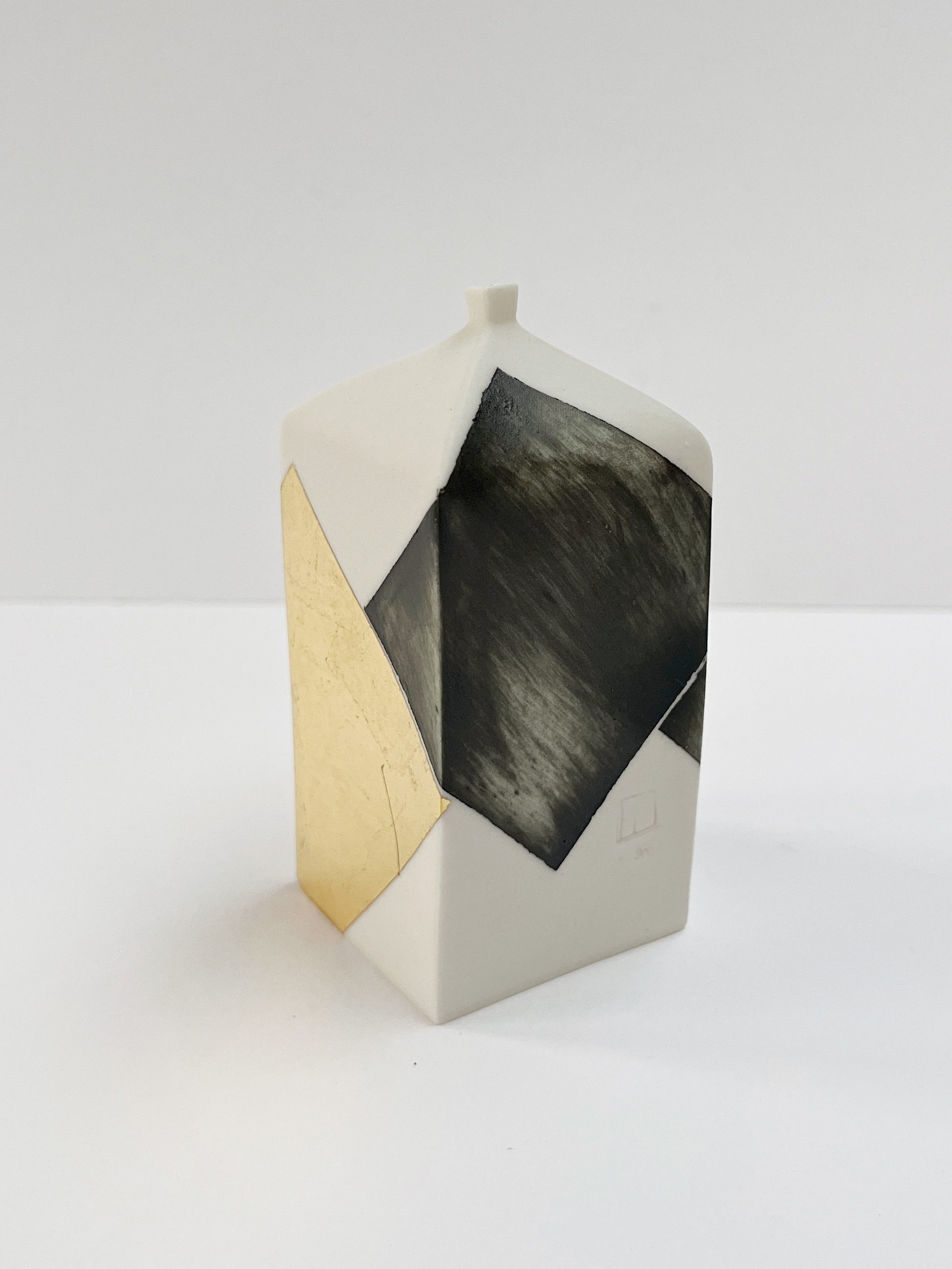 Each piece is individually made in my studio in West Wales using porcelain, underglaze and gold leaf. They are built using thinly rolled out slabs and constructed to form the shape.