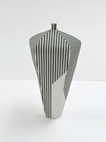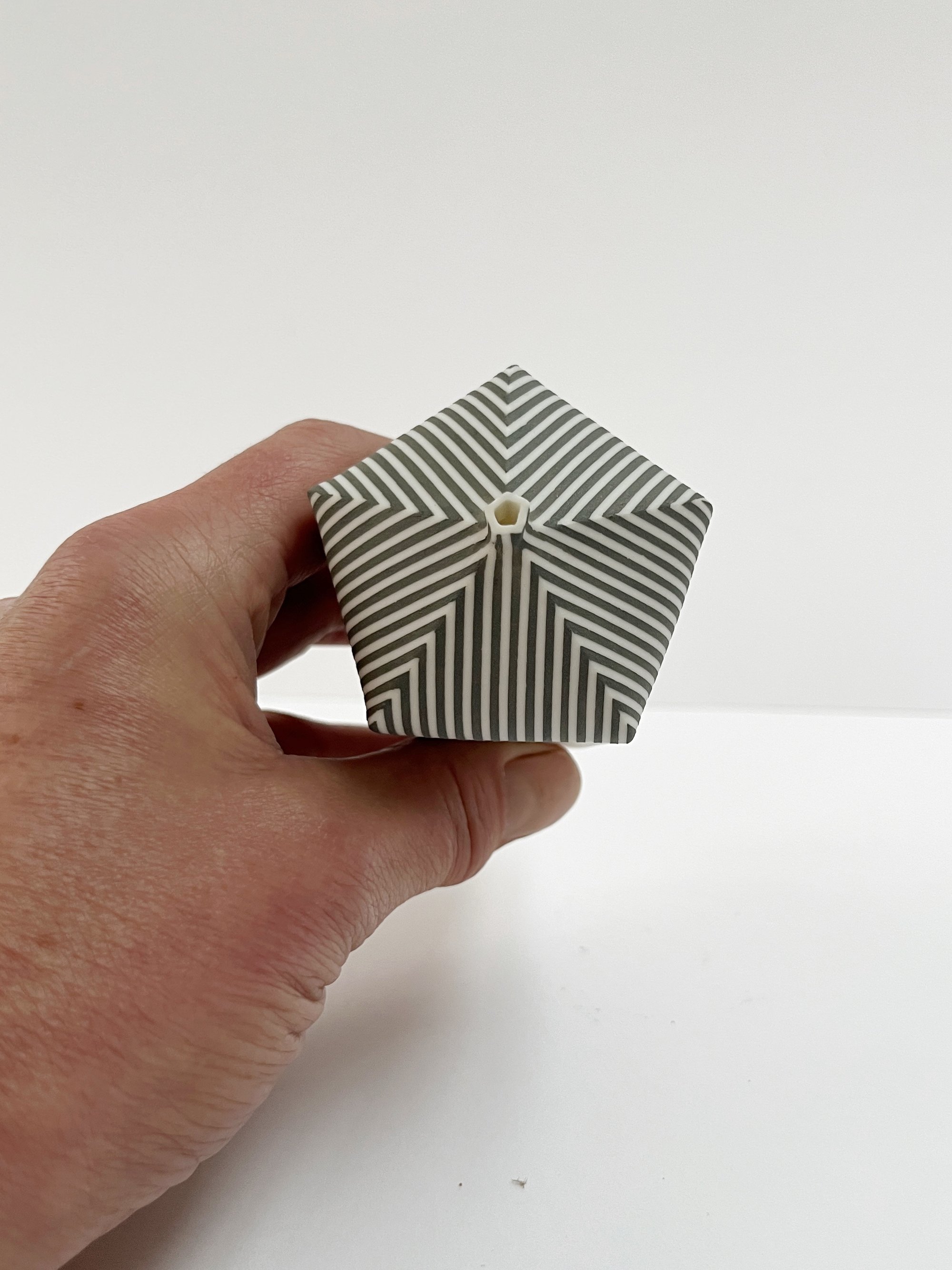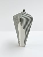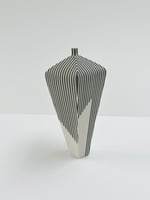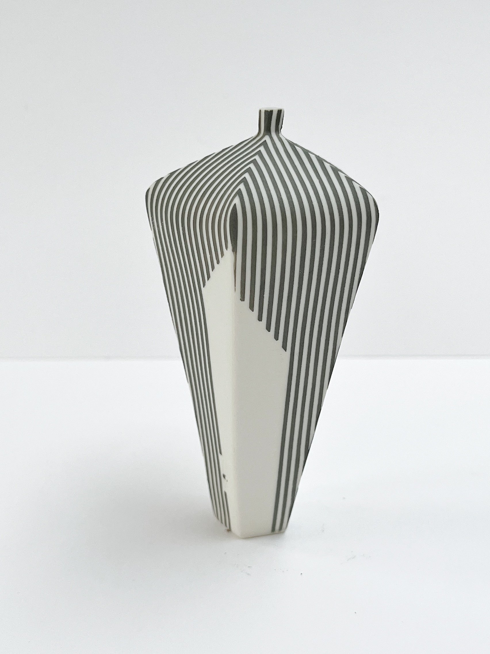 Hand built porcelain vessel with stripes.