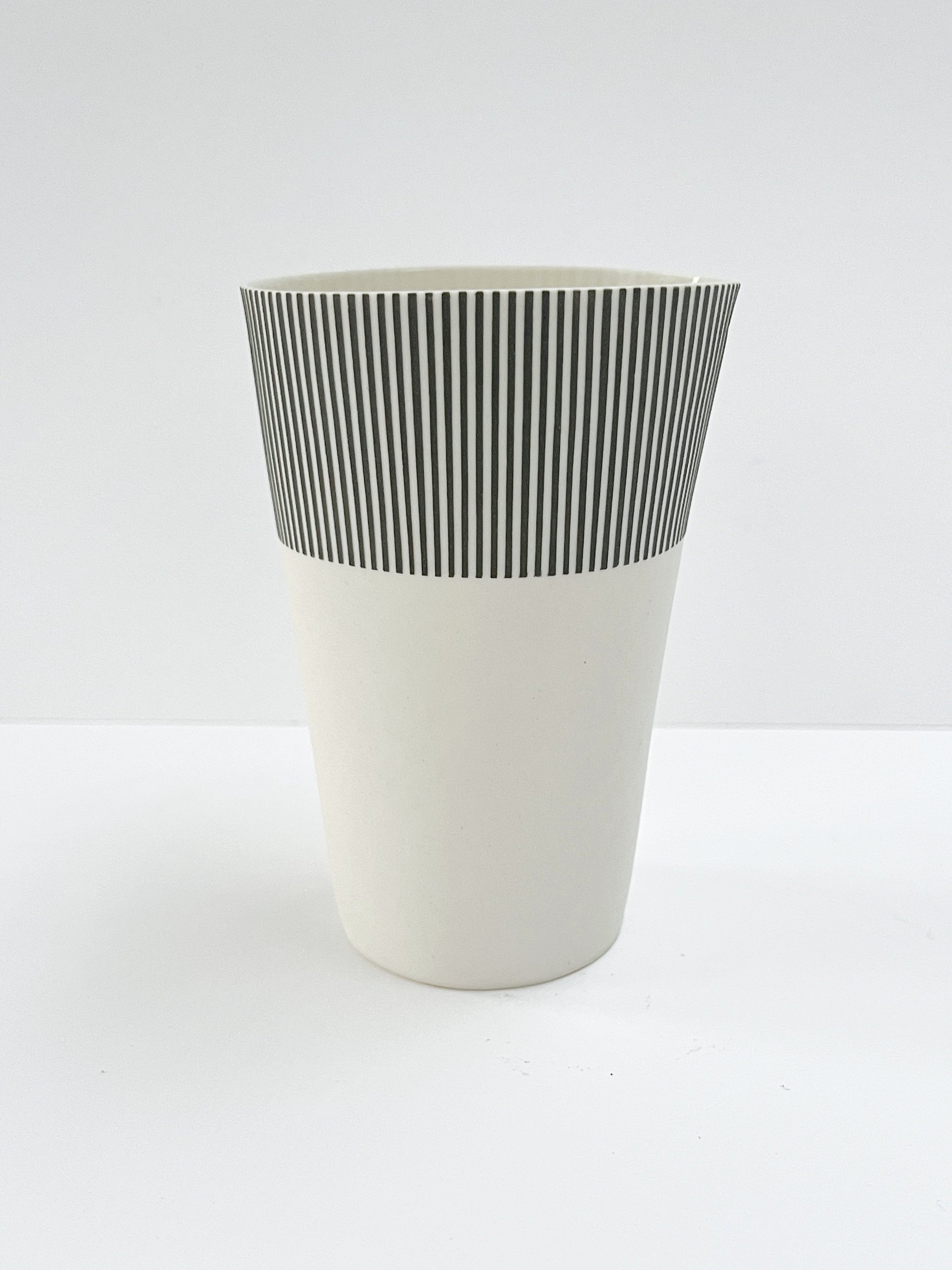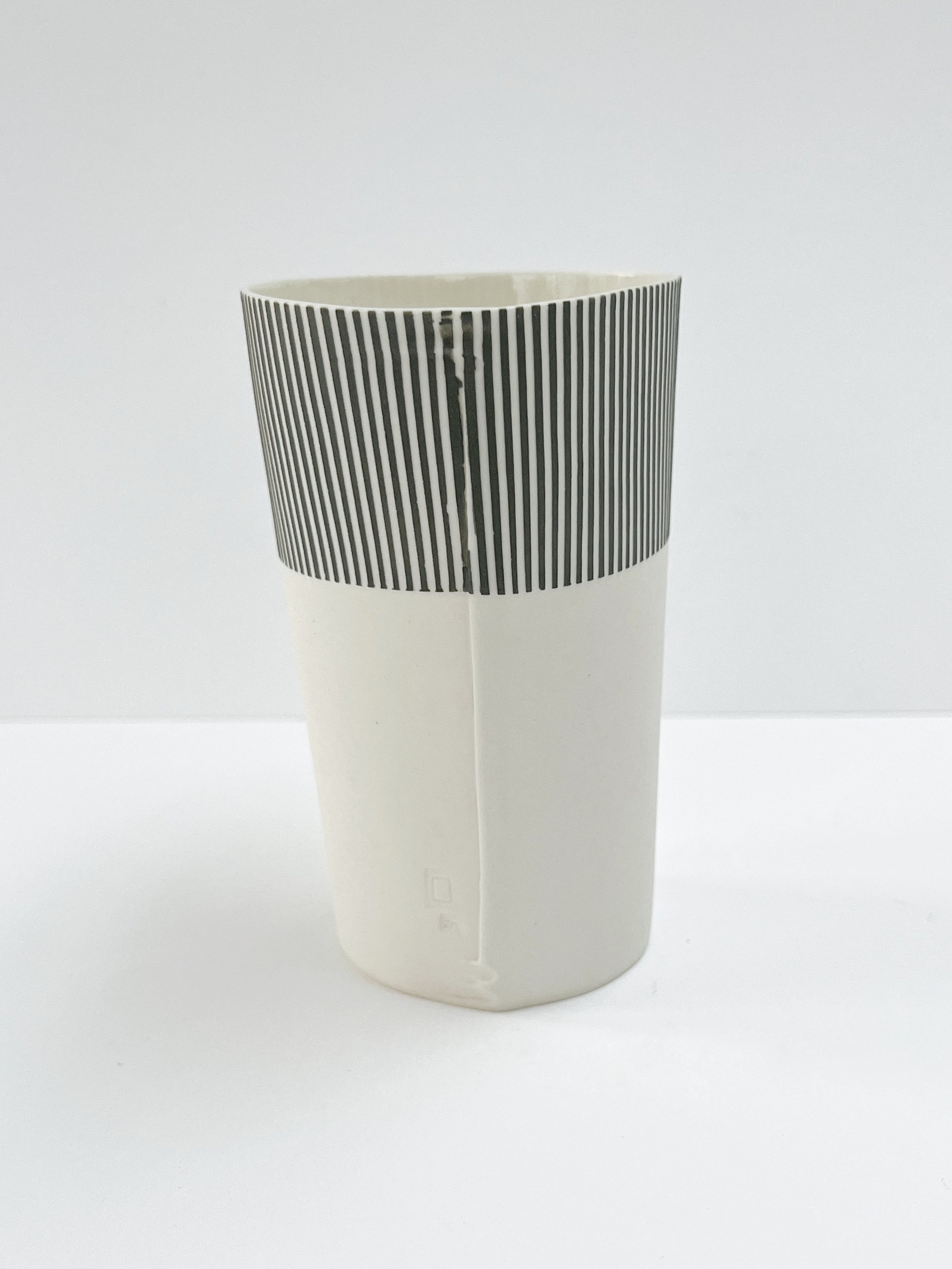Each vessel is individually made in my studio in West Wales using porcelain, underglaze and transparent glaze. They are built using thinly rolled out slabs and constructed to form the shape.